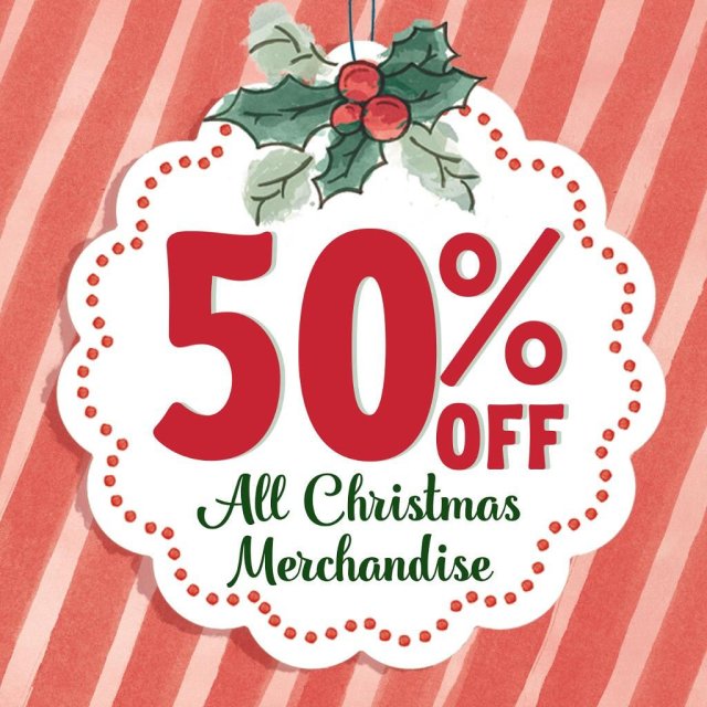 All remaining Christmas product is on sale for 50% off